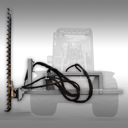 Finger bar sickle hedge cutter connects to your tractors/loaders remote hydraulics to make quick easy work of those problem areas that a normal mower cannot reach.