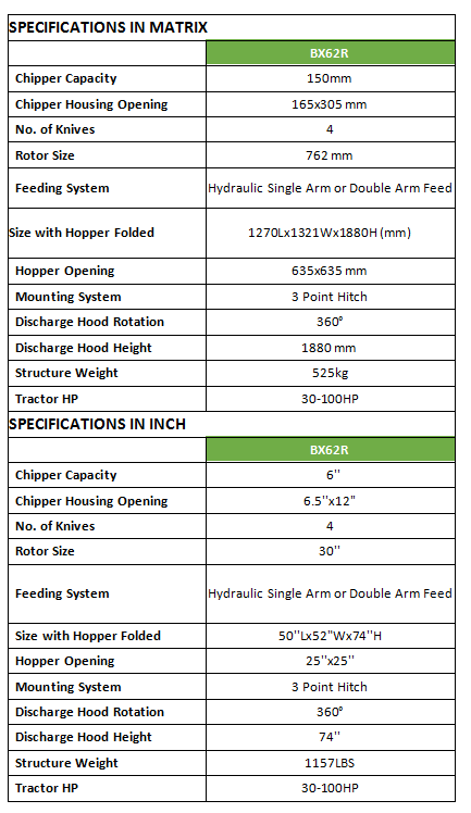 At the heart of the Wallenstein based BX Chipper is an oversize heavy duty rotor and reversible chipping blades. The large diameter rotor has a faster tip speed for improved chipping action and the heavy gauge steel keeps your momentum to power through 7″ diameter branch or 6.5 x 12″ slabs.