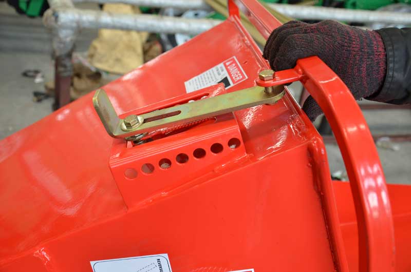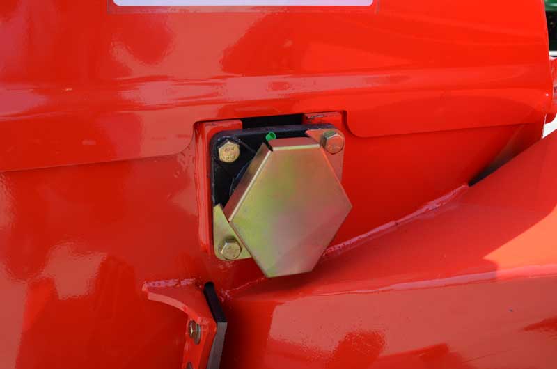 The feed hopper has an opening of 63.5 x 63.5 cm; at the bottom the opening measures 16.5 x 30.5 cm. A maximum diameter of 16.5 cm can be shredded. Many competitors list the maximum shredding diameter as the measurement of the bottom of the feed hopper, however, this value is unrealistic and can trigger the safety mechanism in the P.T.O. Softer woods with a width up to 25 cm can be shredde,d although such diameters are usually processed to firewood and not chipped.