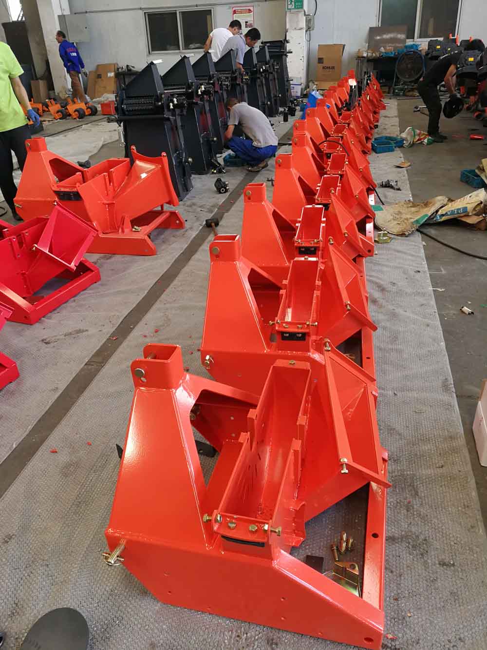 The BX-62R has a very sturdy finish! The material strength of the sheet metal in the weight-bearing area are 10 and 12 mm. At the hopper and the non-weight-bearing parts it is between 4 and 6 mm.