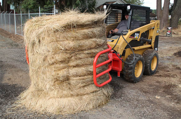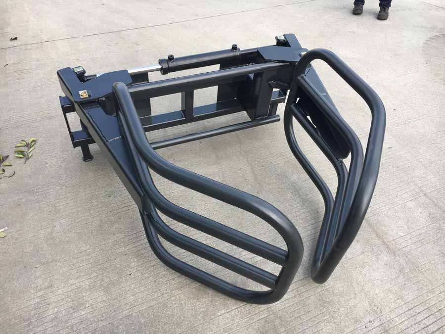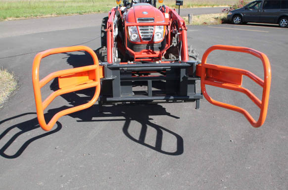 FH-BG130 bale grabber with universal quick release hitch will fit front end loaders or skid steers with the universal hitch. The ideal tool to handle loading and movement of round hay bales or silage bags. This tool minimizes damage to bales and allows the bales to be stacked better.