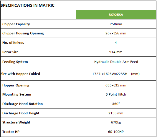 Farmer Helper BX92RSA wood chipper with double arm with long tail.
